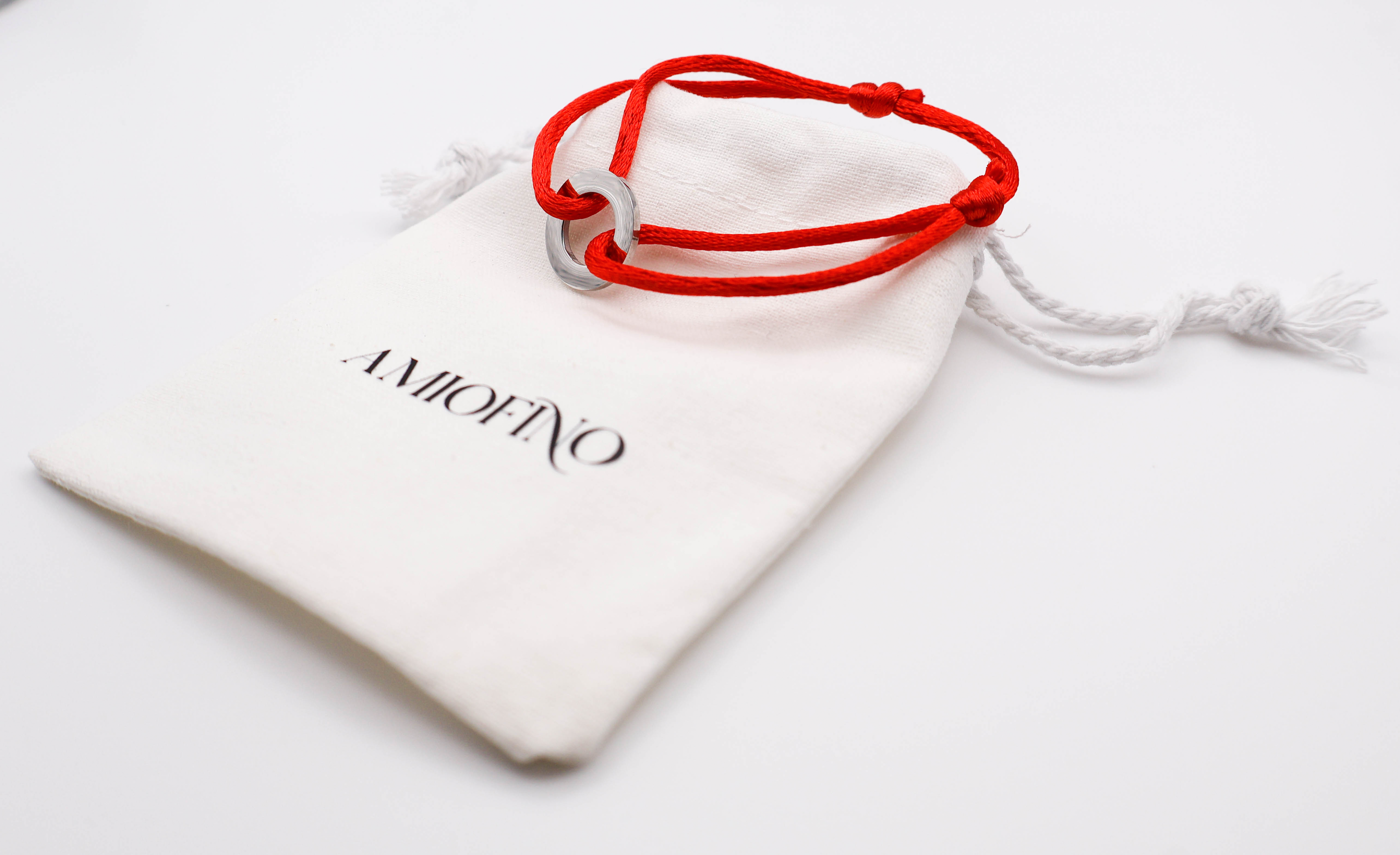 Chaque bracelet est délicatement glissé dans sa pochette en tissu signée Amiofino.